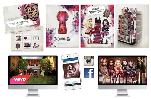 After the meteoric rise of Monster High, Mattel was launching its next high school brand, Ever After High. I worked closely with multiple creative and marketing teams to develop the brand’s launch strategy and visual look, then led the Marcom design team to create branding and marketing materials, a brand standards book and a launch guide. Campaign elements included print, social, merchandising, collateral, broadcast and an original brand anthem. Finally, we teamed up with Wayne Isham to produce an imaginative music video and engage our new fans.